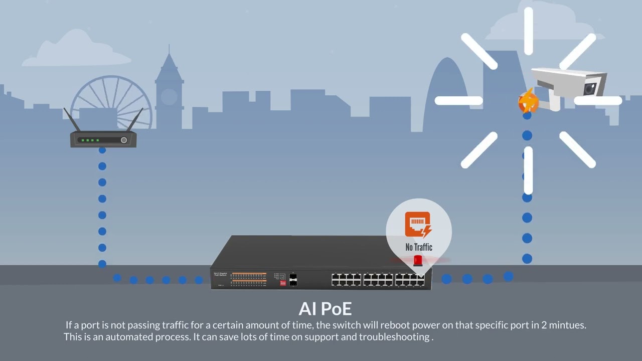 Permite monitorizar los puertos que están alimentando algún dispositivo por PoE. Si en el transcurso de 2 minutos no se detecta tráfico en el puerto el switch reinicia el puerto provocando el reinicio por falta de alimentación del dispositivo PoE alimentado. Esta funcionalidad puede resolver muchas incidencias facilitando el mantenimiento de las instalaciones y evitando algunos desplazamientos del personal técnico.